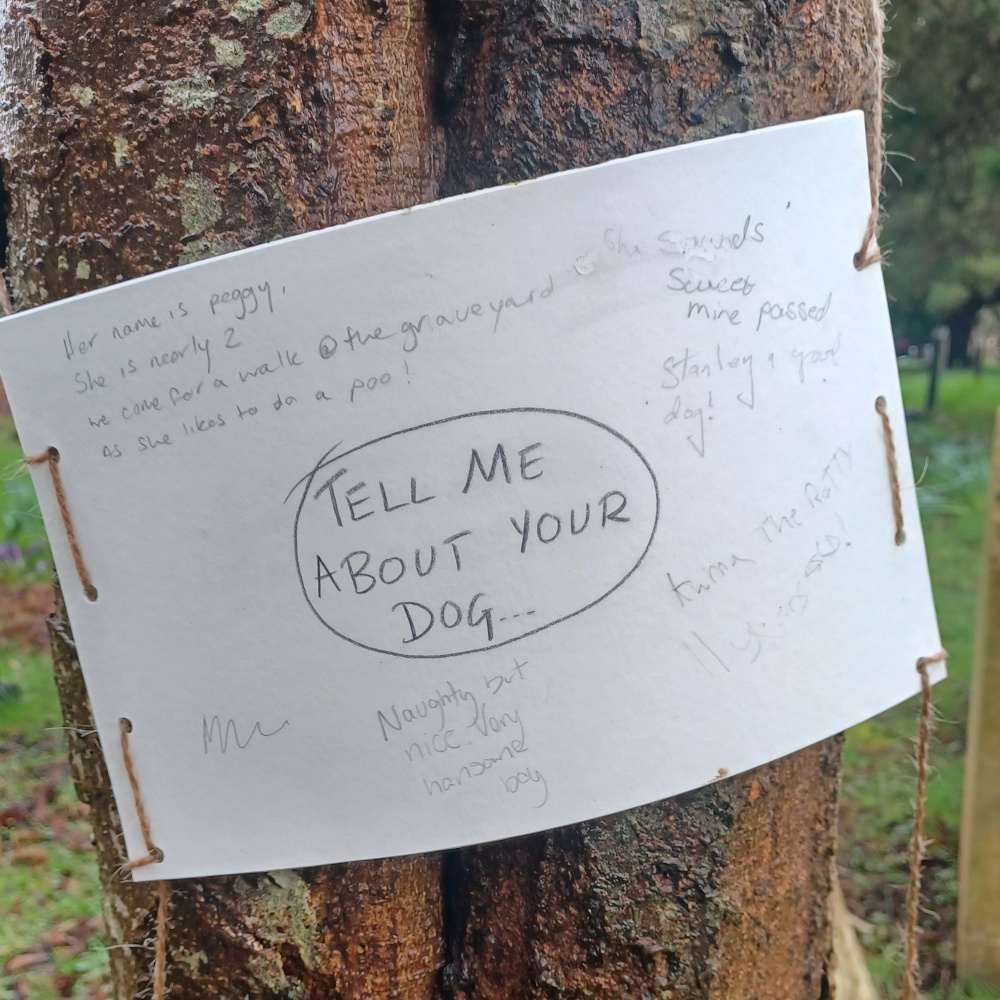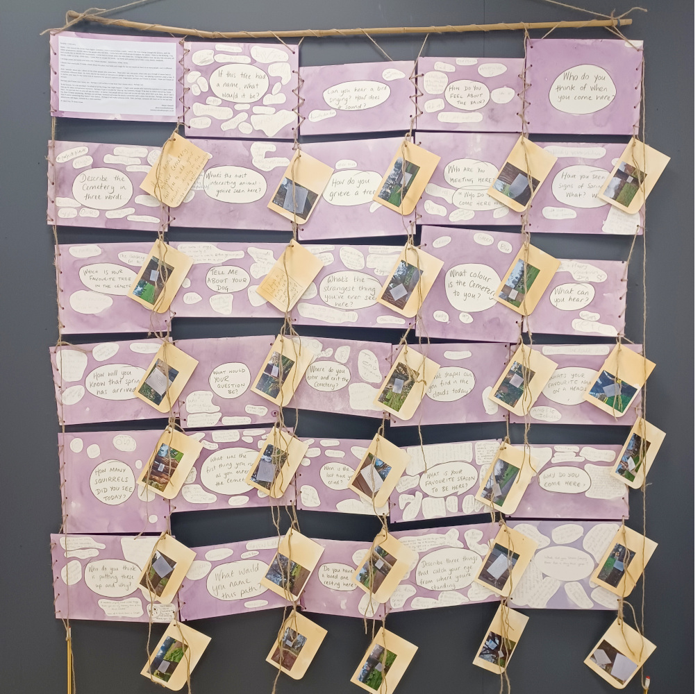 But now it’s time for the questions (and their answers) to return to Higher Cemetery. So many people have mentioned the questions they found, or exploded with the mystery of looking every day and somehow NEVER finding a question. Together, these boards offer a reflection of the collective experience of a place where many of us go to rest, amble and connect with the natural world. It’s time to mirror these thoughts back to the people who shared them and, who knows, perhaps to continue the conversation …