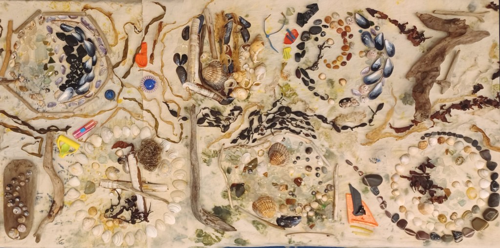 Form shells, seaweed, driftwood and pebbles into pictures and, as you do so, consider their role in the ecosystem.